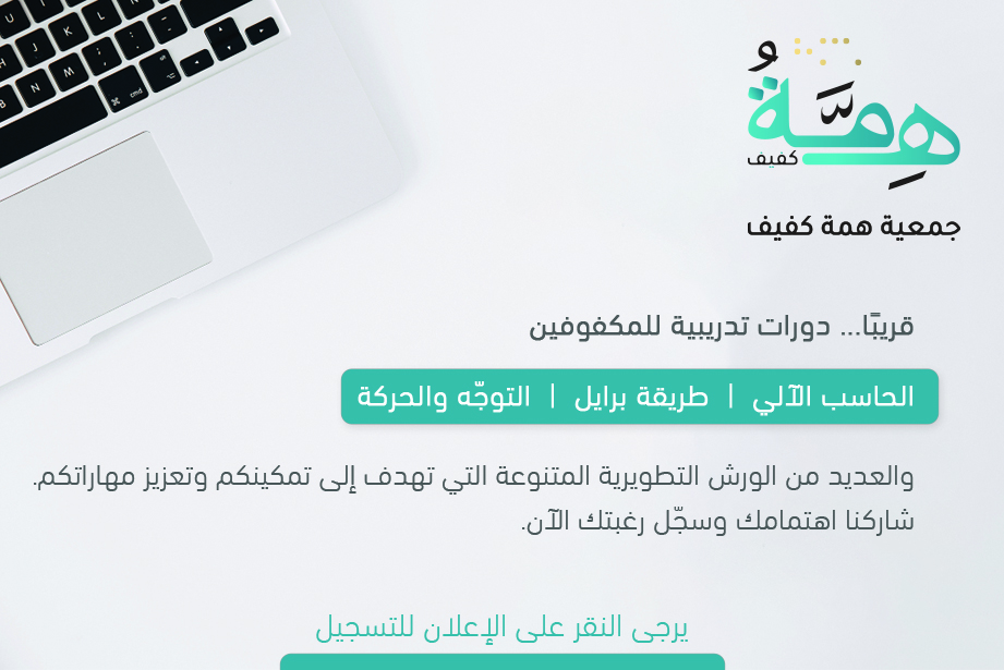 نبذة عنا هي جمعية غير ربحية متخصصة في تدريب وتأهيل ذوي الإعاقة البصرية ، وتتخذ من المنطقة الشرقية في المملكة العربية السعودية مقرًا لها. تسعى الجمعية إلى تمكين ذوي الإعاقة البصرية وتعزيز استقلالهم من خلال برامج متكاملة تهدف إلى دمجهم في المجتمع كأفراد منتجين وفاعلين في مختلف المجالات الحياتية والمهنية.تأسست الجمعية انطلاقًا من رؤية طموحة تهدف إلى تحسين جودة حياة ذوي الإعاقة البصرية وتطوير مهاراتهم، مما يمكنهم من تحقيق ذاتهم والمشاركة بفعالية في سوق العمل والمجتمع.